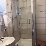 Koupelna obsahuje umyvadlo a prostornou sprchu.